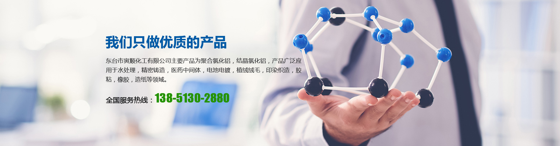 東臺市寅順化工有限公司主要產品為聚合氯化鋁,結晶氯化鋁,產品廣泛應用于水處理,精密鑄造,醫藥中間體,電池電鍍,植絨絨毛,印染織造,膠粘,橡膠,造紙等領域。